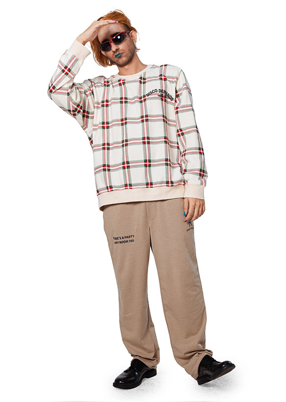 - Design: The Disco Demands embroidered sweatshirt by Hermod is manufactured using premium quality 100% cotton material. Butter-soft fabric that hugs your skin makes this plaid sweatshirt stand out in terms of comfort and longevity from other men's winter wear.