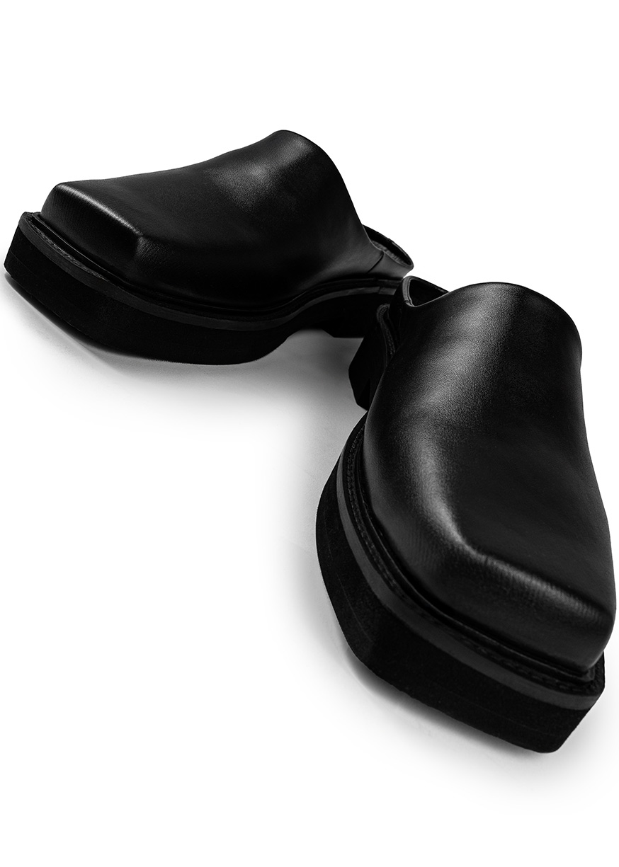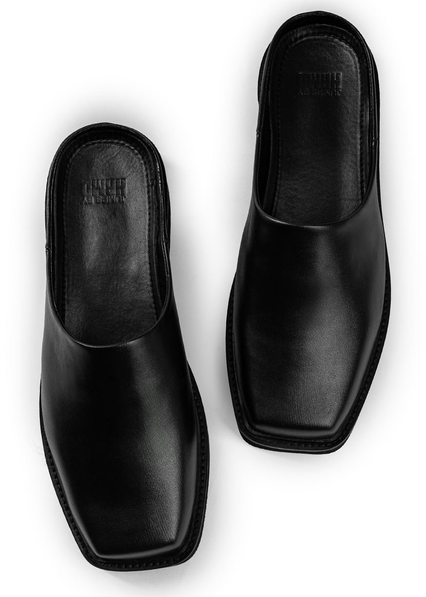 Crafted in-house, JUMPS By HRMD’s Half Cut vegan leather shoes present a unique square-tip toe. Made with 100% vegan leather